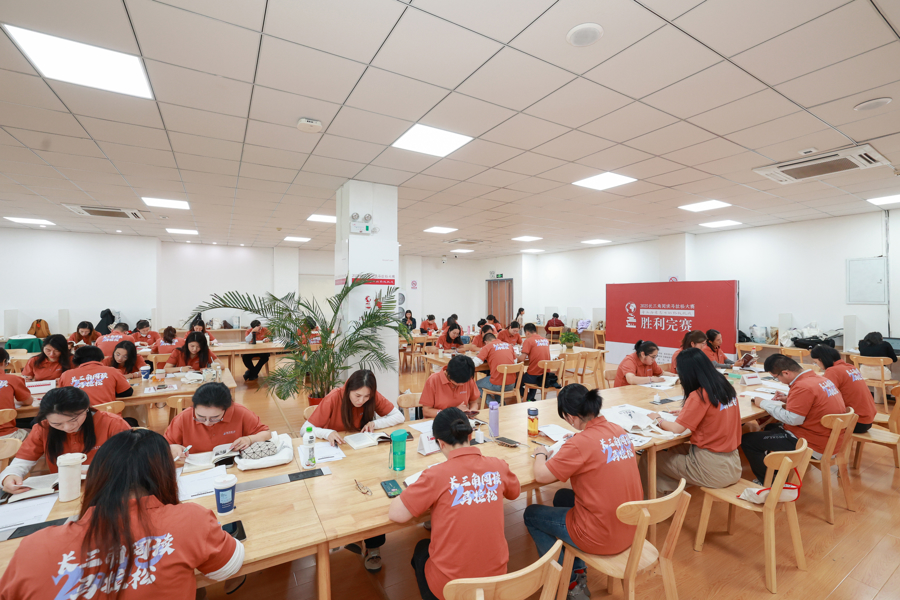 选手们迅速沉浸在宁静而紧张的阅读氛围中,偌大的赛场内只听闻书页翻动的细微声响。他们在文字的世界里争分夺秒,向着知识的终点奋力冲刺!